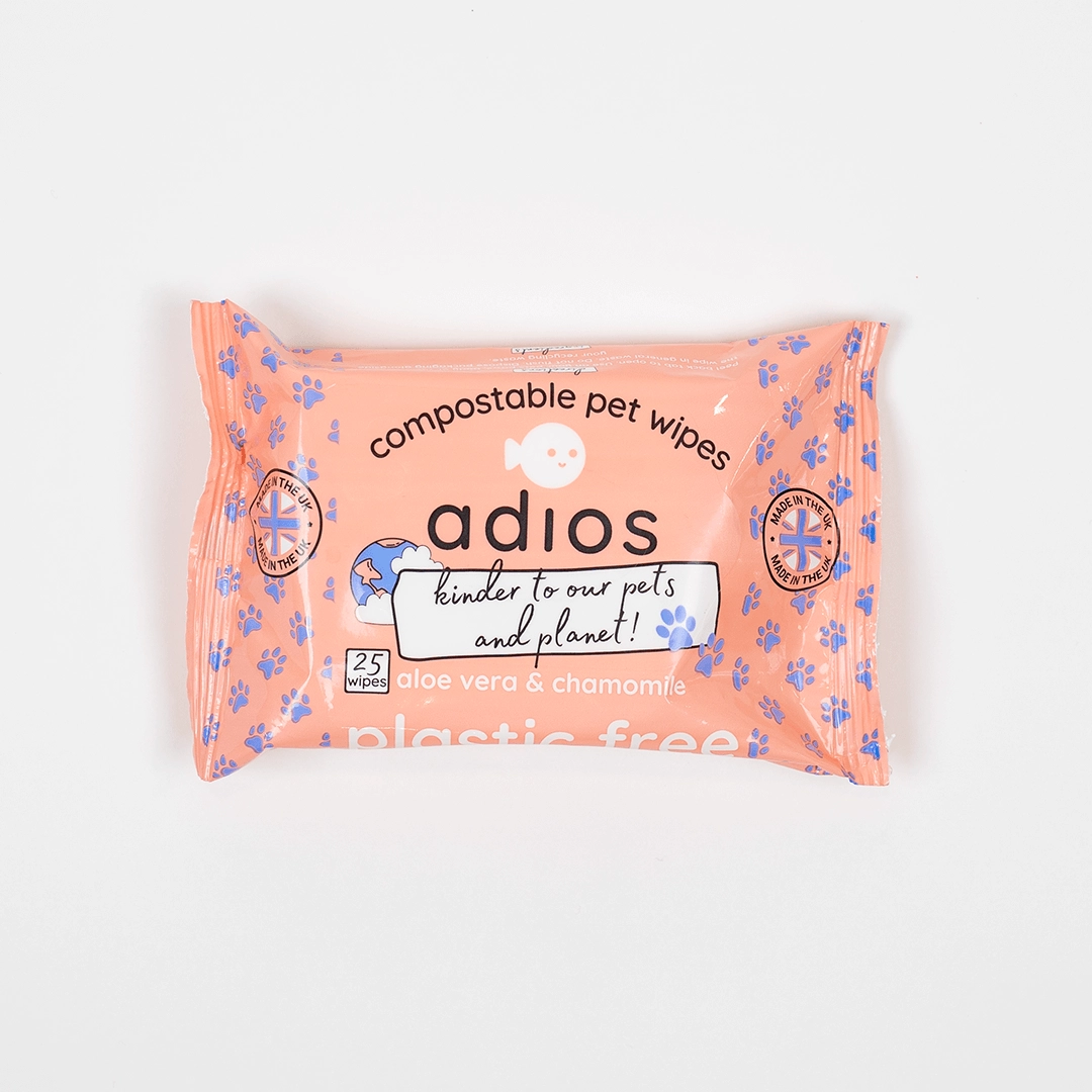 Keep your dog fresh, clean, and happy with Adios Compostable Pet Wipes, the gentle, eco-friendly way to care for your best friend every day.