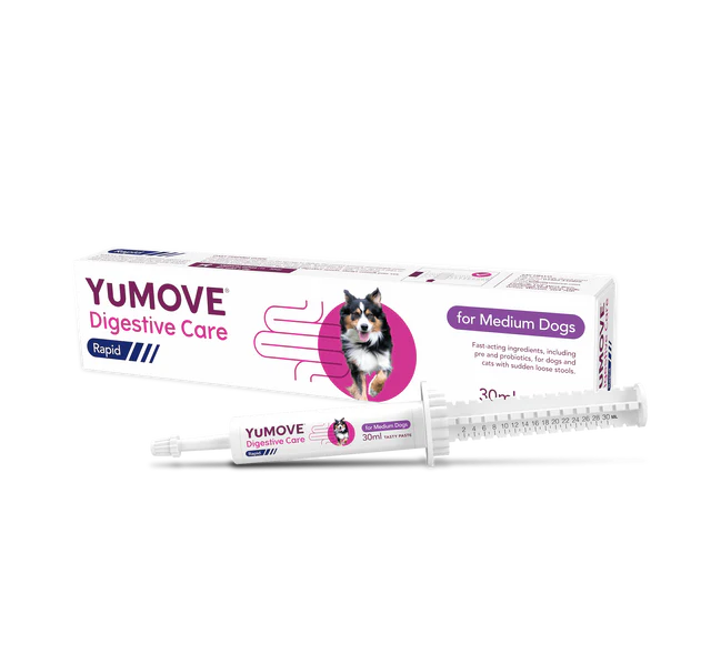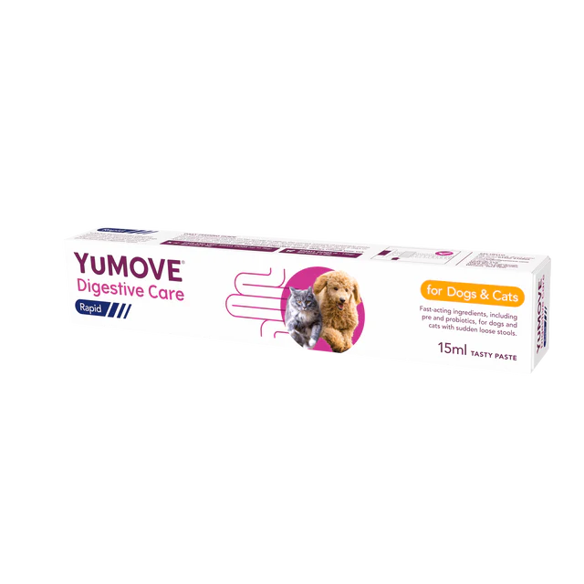 YuMOVE Digestive Care Rapid is an easy-to-feed digestive supplement for dogs that helps firm up poos and support gut recovery after an upset tummy. Made with fast-acting, scientifically backed ingredients, it contains pre and probiotics to help feed and stimulate the growth of good bacteria in your pet’s tummy, helping them get back on track and feeling great.